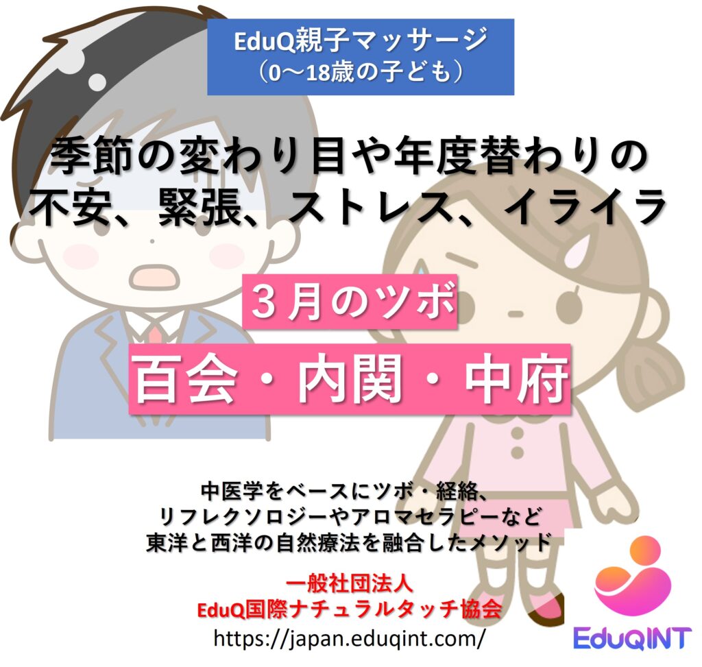 【3月のツボ☆季節の変わり目や年度替わりの 不安、緊張、ストレス、イライラ「百会・内関・中府」】