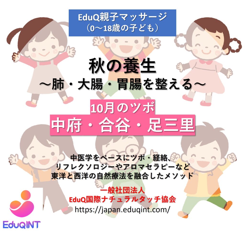 EduQでは、中医学をベースにツボや経絡、リフレクソロジー、アロマセラピー、ヨガなど東洋と西洋の自然療法を融合したオリジナルのEduQメソッでで、0歳~18歳の親子マッサージをお伝えしています。