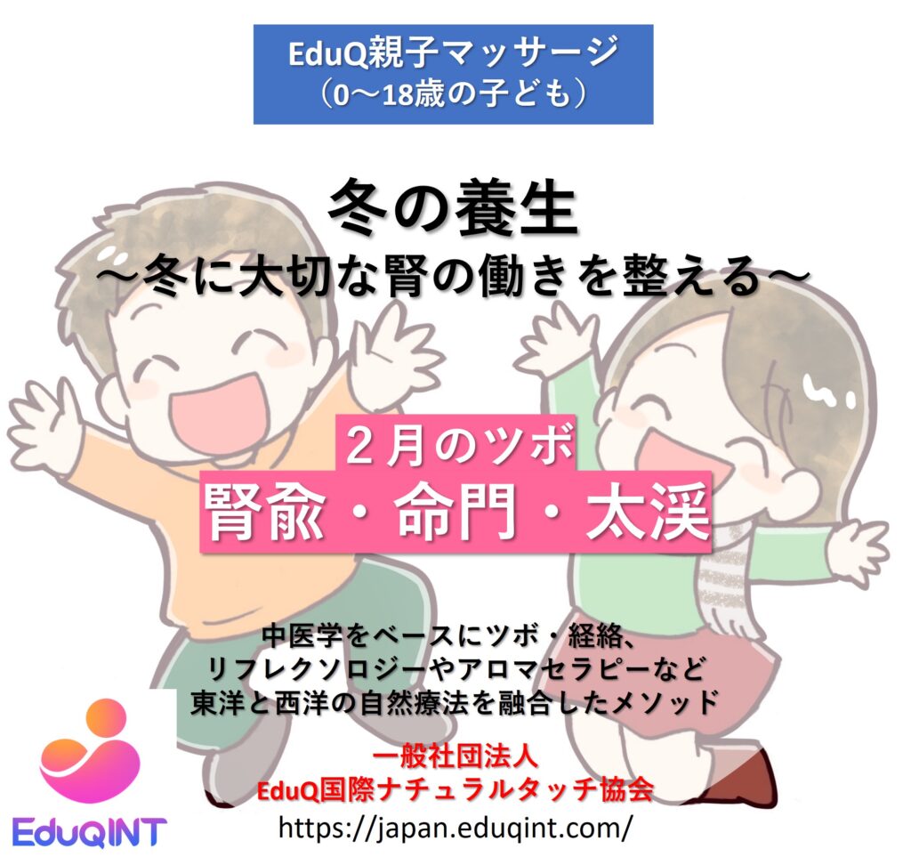 EduQでは、中医学をベースにツボや経絡、リフレクソロジー、アロマセラピー、ヨガなど東洋と西洋の自然療法を融合したオリジナルのEduQメソッでで、0歳~18歳の親子マッサージをお伝えしています。