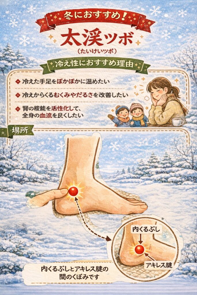 冬に弱りやすい「先天の気」を守る要のツボ。