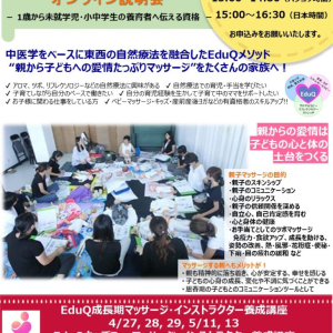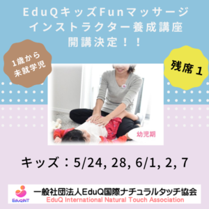 残1席【EduQキッズFunマッサージ・インストラクター13期養成講座】5月24日…