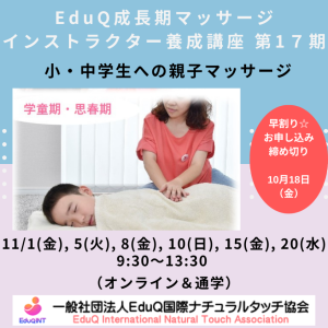 【EduQ成長期マッサージ・インストラクター養成講座】17期募集スタート