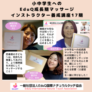 小・中学生への「EduQ成長期マッサージ」インストラクター養成講座・17期…