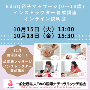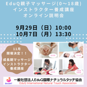 【11月無料説明会】EduQ親子マッサージ・インストラクター養成講座オンラ…