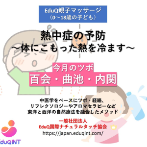 【今月のツボ☆熱中症の予防 ~体にこもった熱を冷ます~「百会・曲池・内…